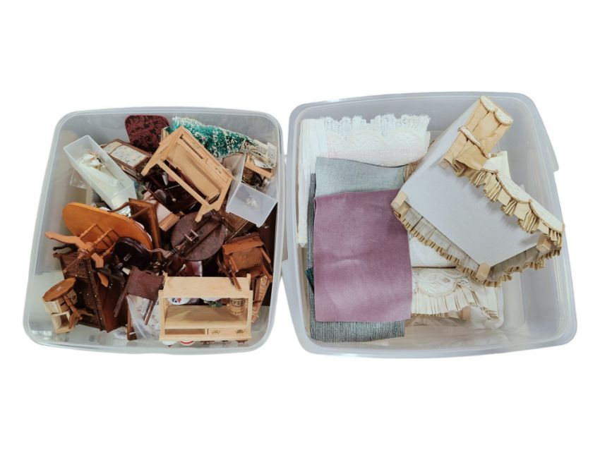 2 BOXES OF DOLLS HOUSE FURNITURE