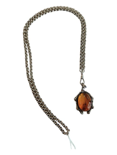 SILVER & AMBER PENDANT ON LONG HEAVY SILVER BELCHER