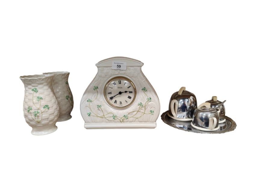 SHELF LOT OF BELLEEK & VINTAGE TEA FOR ONE