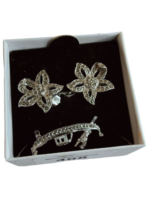 VINTAGE MARCASITE GONDOLA BROOCH AND CLIP ON EARRINGS