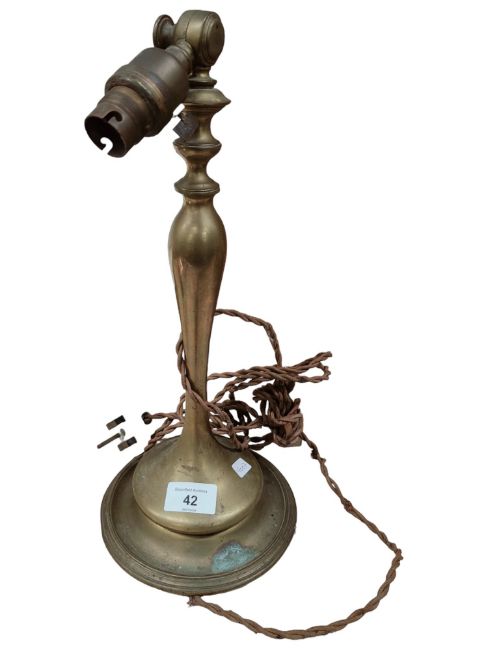 ANTIQUE ARTS AND CRAFT ARTICULATED BRASS CARRIAGE LAMP AND BASE