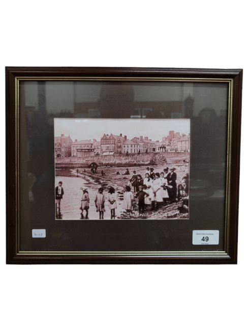 OLD FRAMED PHOTO PRINT THE BEACH, BANGOR, CO. DOWN